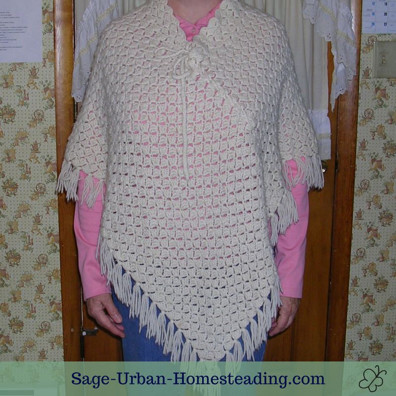 Here's my mom's old vintage poncho in a neutral color off white yarn. She doesn't remember who made it, but it wasn't her.